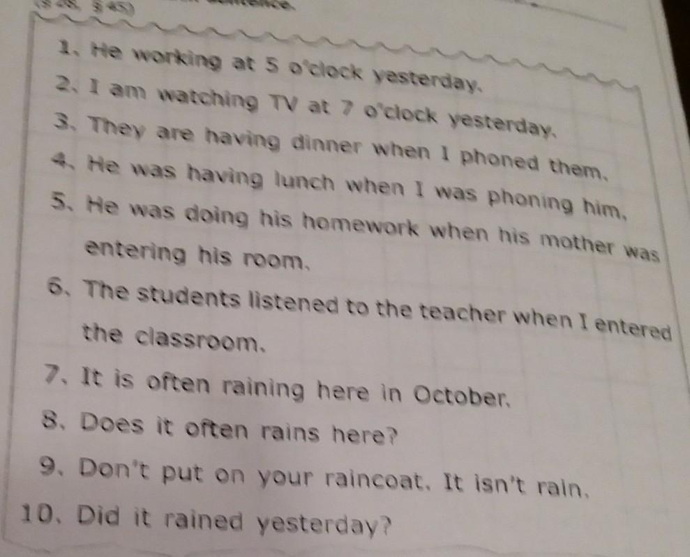 Как я поняла там ошибки,можете просто написать в чём они,типо ing или что то там.