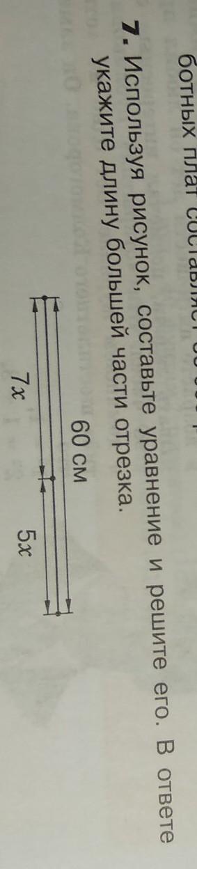 Отрезок длиной 60 см разделен на два отрезка по 7x и 5x см.