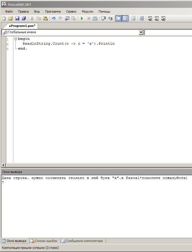 дана строка. нужно сосчитать сколько в ней букв "а".в Pascal*помогите пожалуйста)