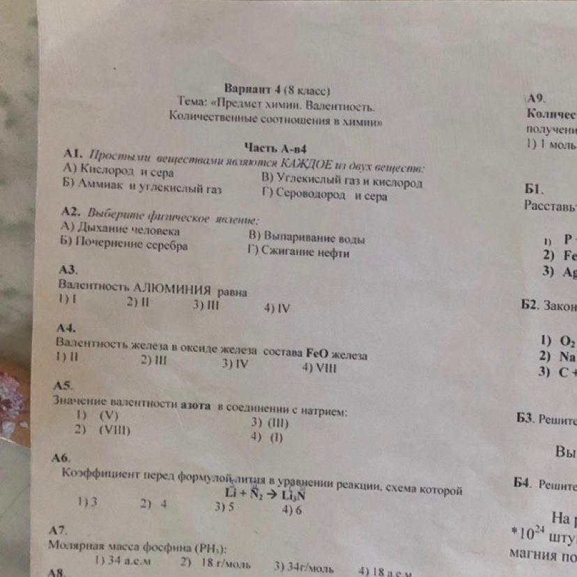 А2 - В) (т.к. один из признаков химического явления - это образование новых веществ, при выпаривании воды ничего нового не образуется)