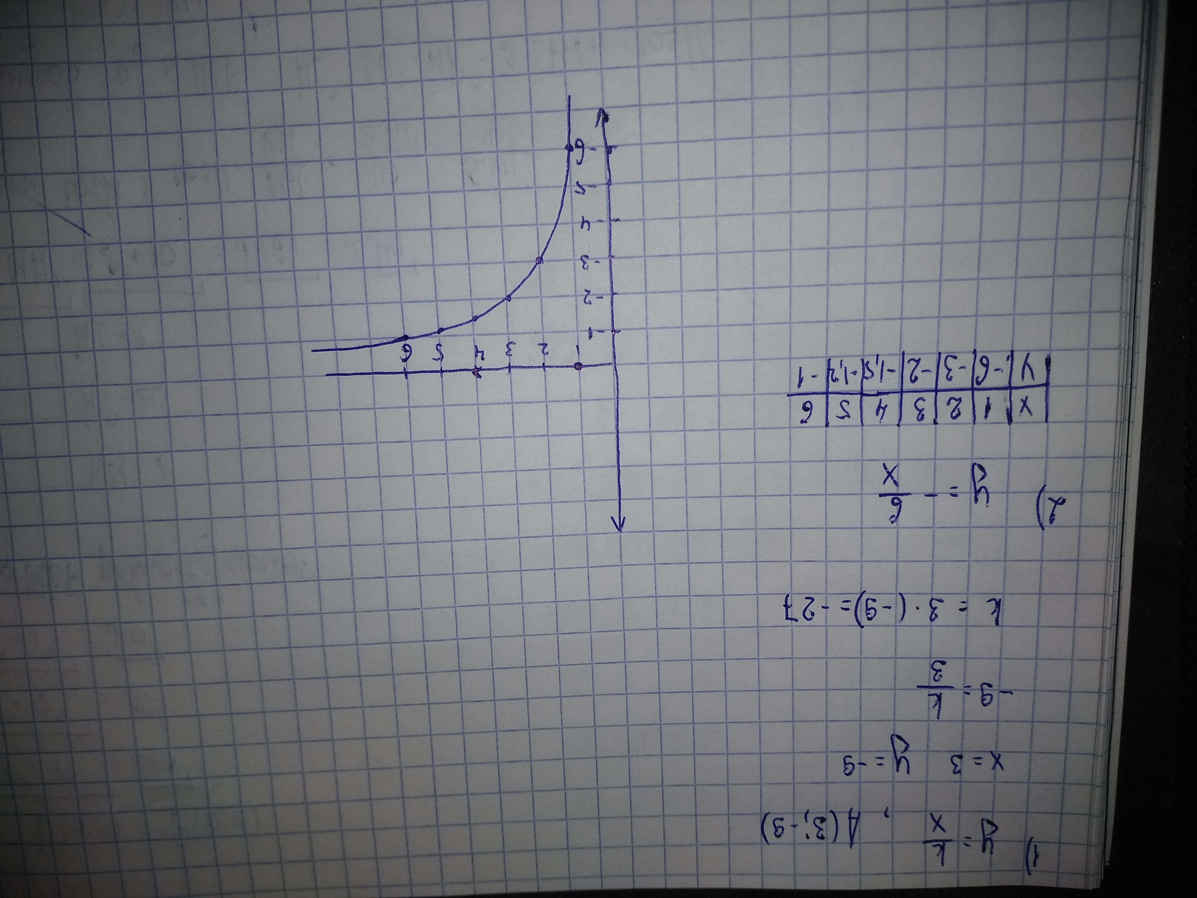 1)Найти коэффициент k для функции y=k/x, если известно,что график проходит через точку A(3;-9)