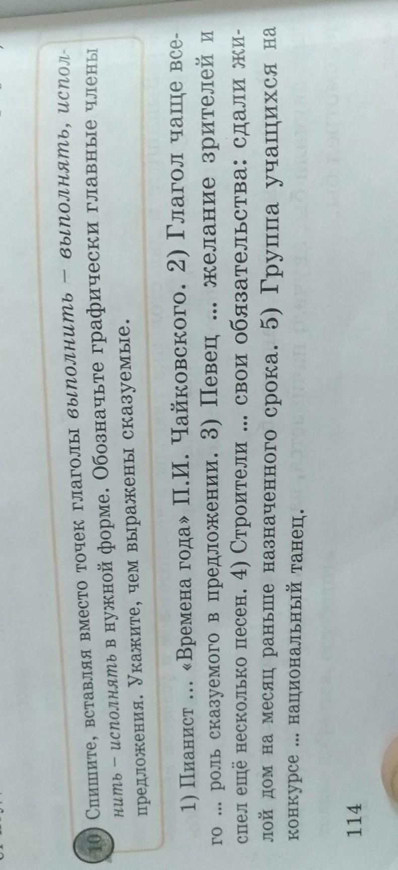 Ответ: 1) исполнил.2)выполняет.3)исполнил.4) выполнили.5)исполнила