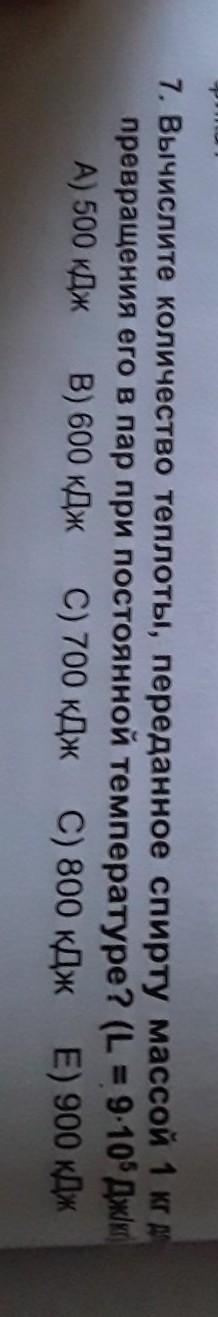 вычислите количество теплоты переданное спирту массой 1 кг для превращения его в пар при постоянной температуре?