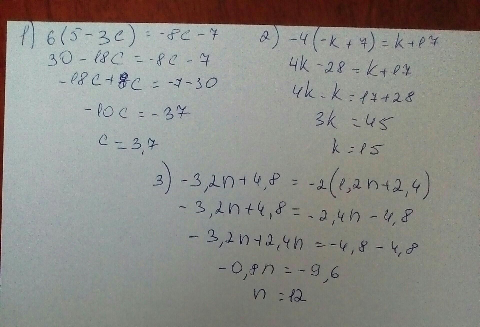 2) (- 4) * (-к) + (- 4) * 7 = к + 17