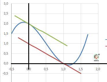 Y = -1*(x - 0) + (2) = - x + 2 - уравнение касательной - ОТВЕТ