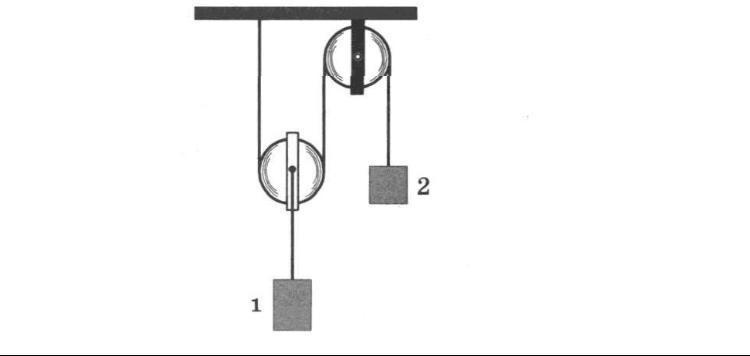 На рисунке система находится в равновесии.Блоки и нити очень лёгкие, трение пренебрежимо мало.Масса груза 1 равна 6кг.Чему равна масса груза 2?
