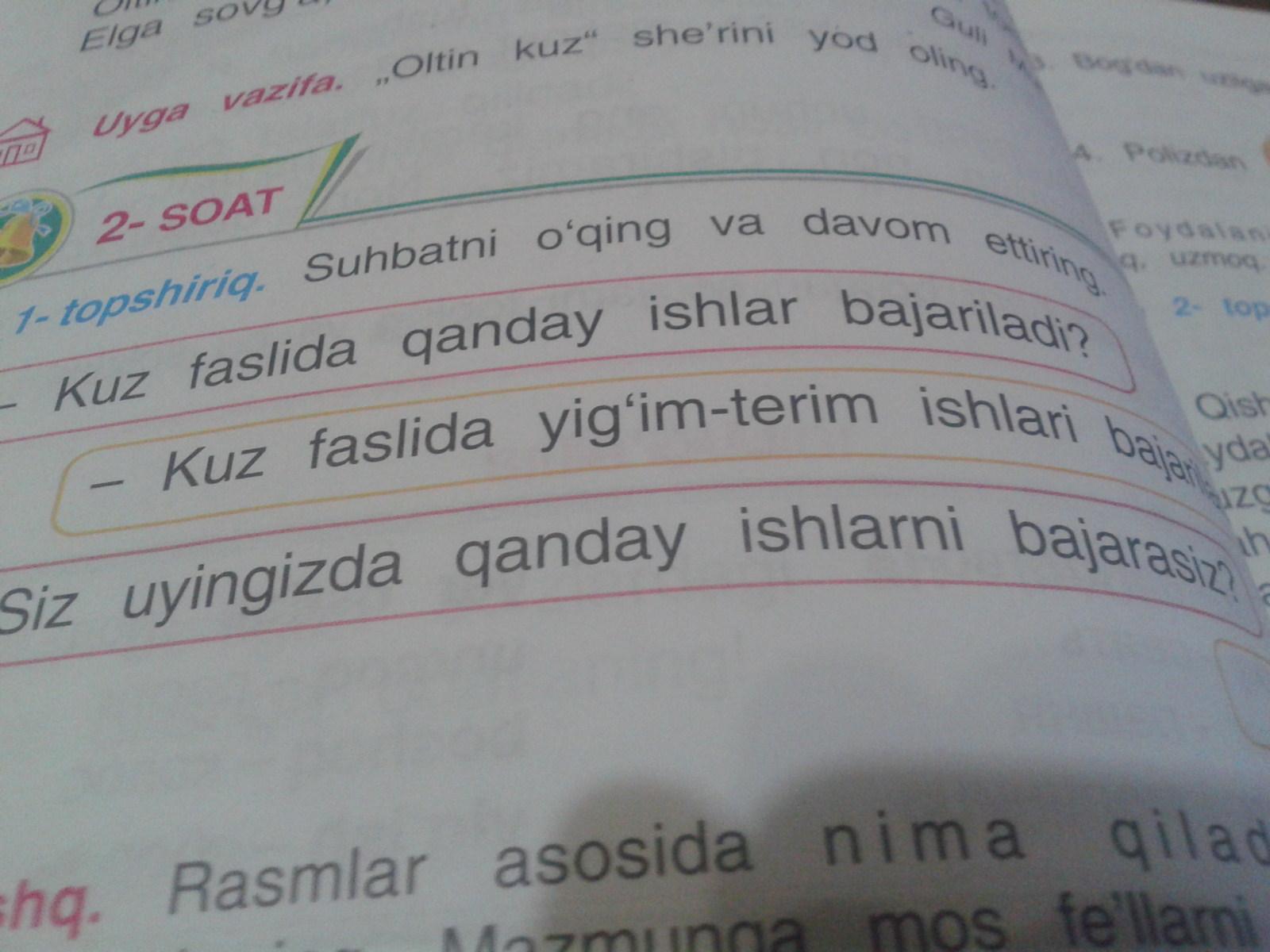 -Men uyda oyijonimga qarashaman, kochalarni sipiraman. Senchi uyingda qanday ishlar qilasan?