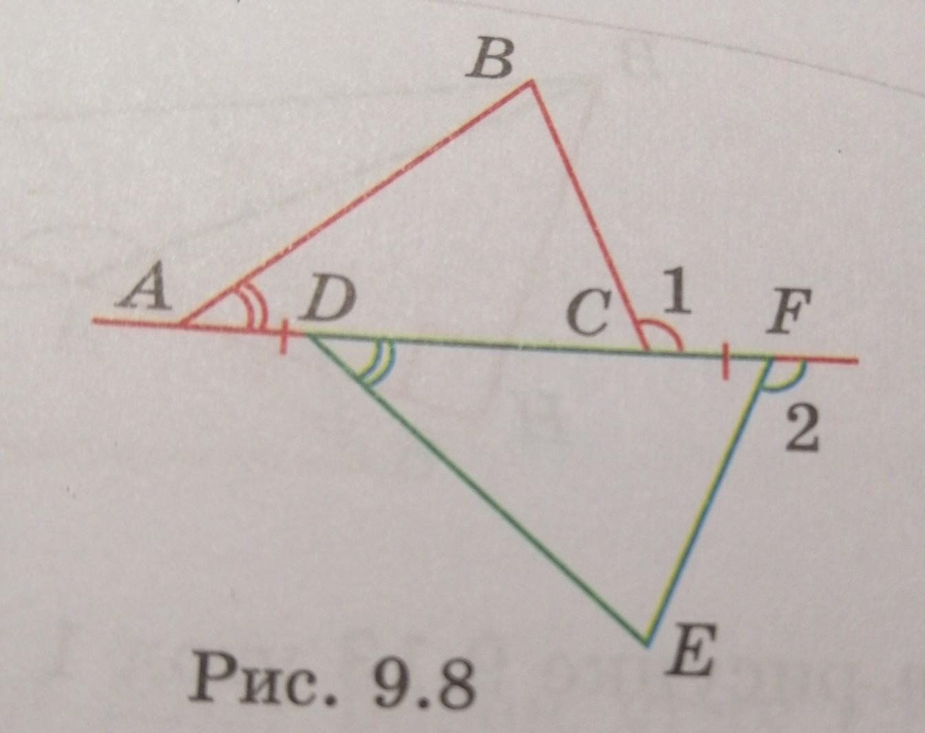 На рисунке 9.8 изображена фигура, у которой AD = CF, угол