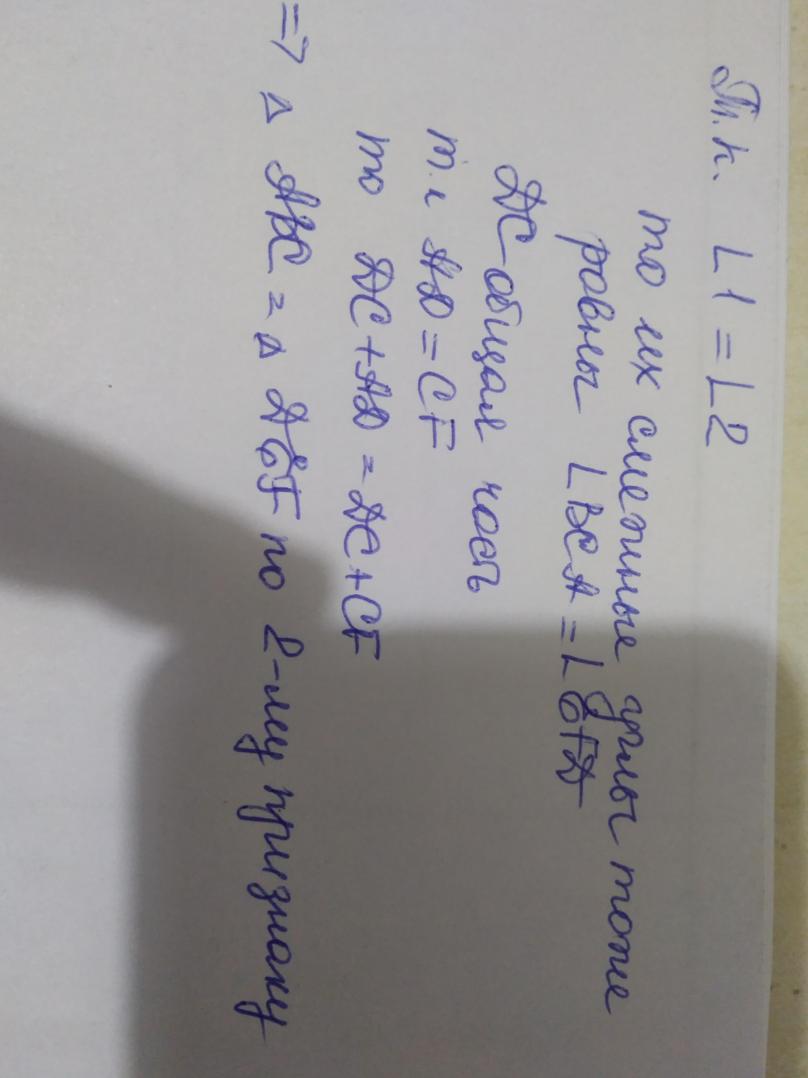 ВАС равен углу EDF, угол 1 равен углу 2. Докажите, что треугольники ABC и DEF равны.