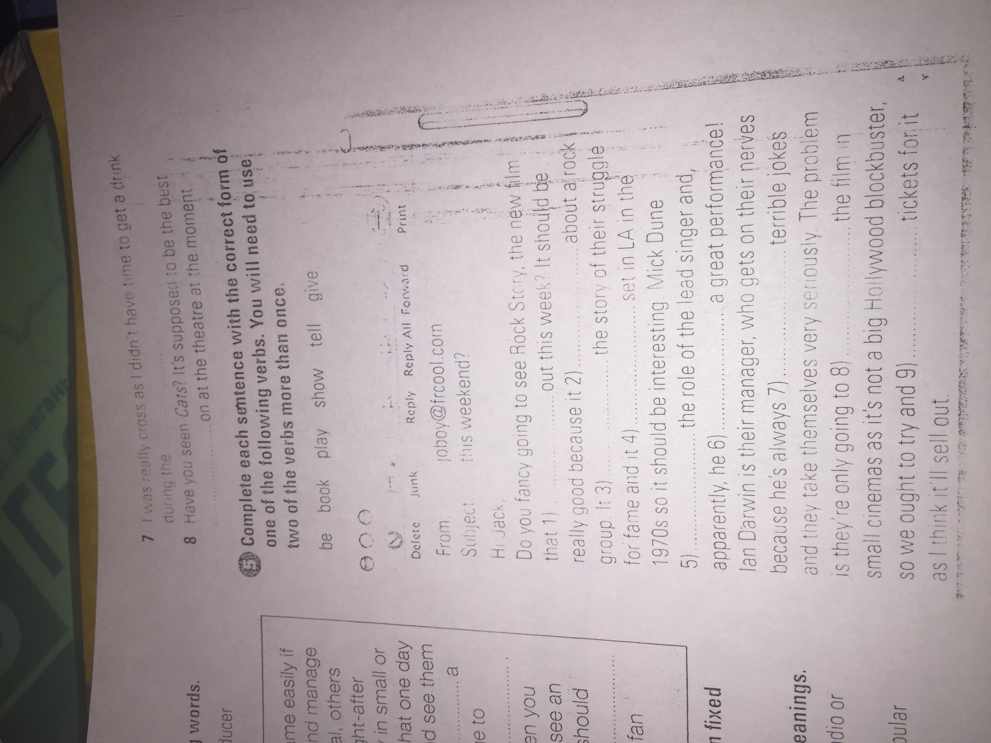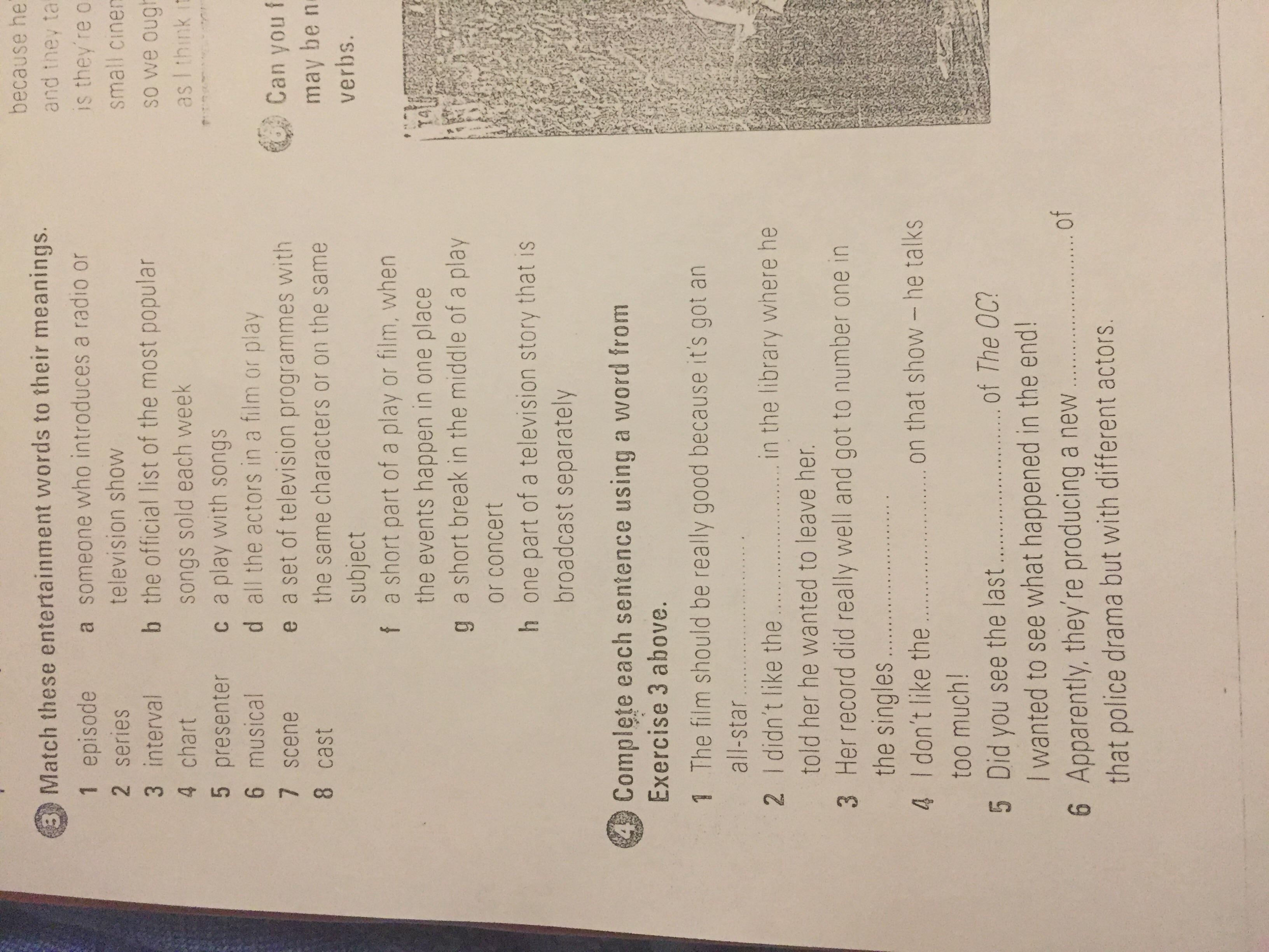 2. 1 cast 2 scene 3 chart 4 presenter 5 episod 6 series 7 interval 8 musical