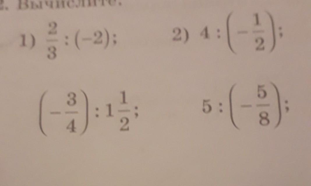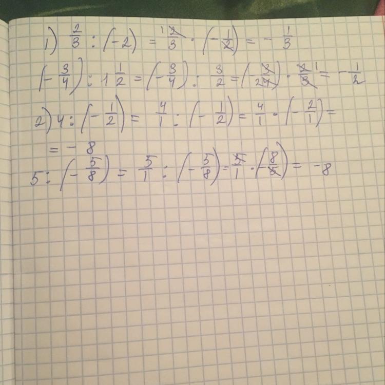 1)2/3:(-2/1)=2/3×-1/2=-2/6=-1/3