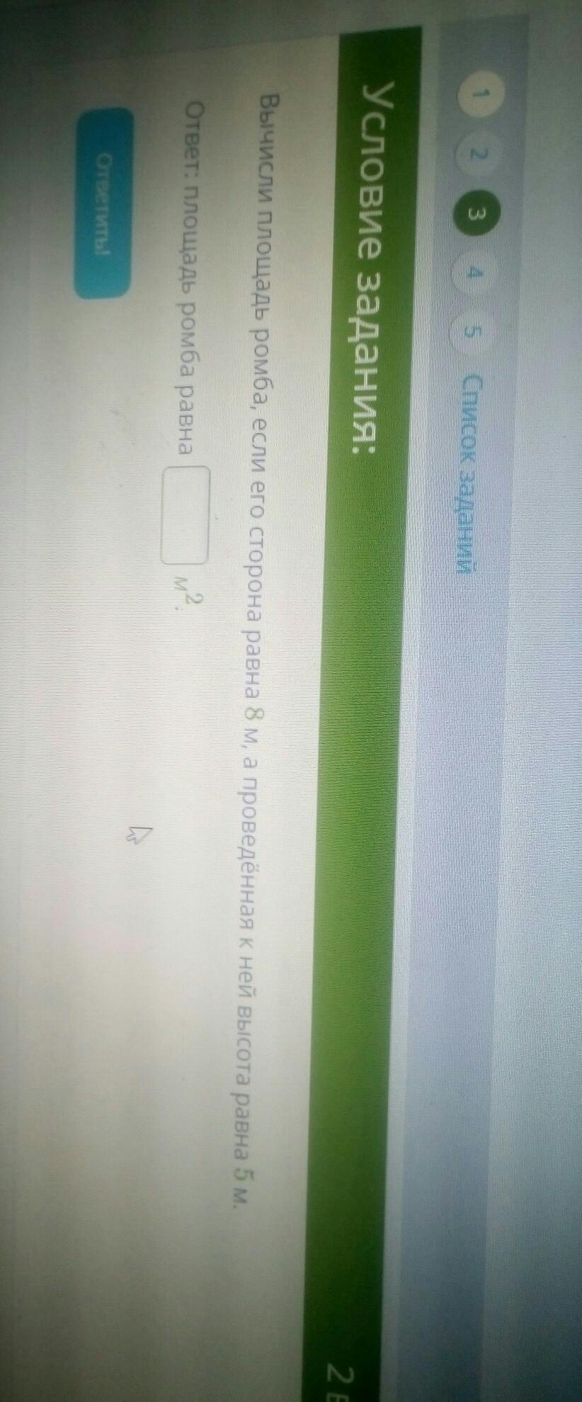 Площадь равна произведению основания на высоту, значит, в вашем примере это 8*5=40/м²/