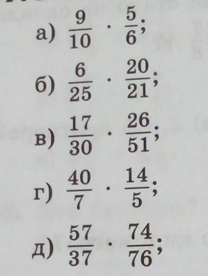 д) 57/37 * 74/76= 6/4= 1 целая 2/4= 1 целая 1/2