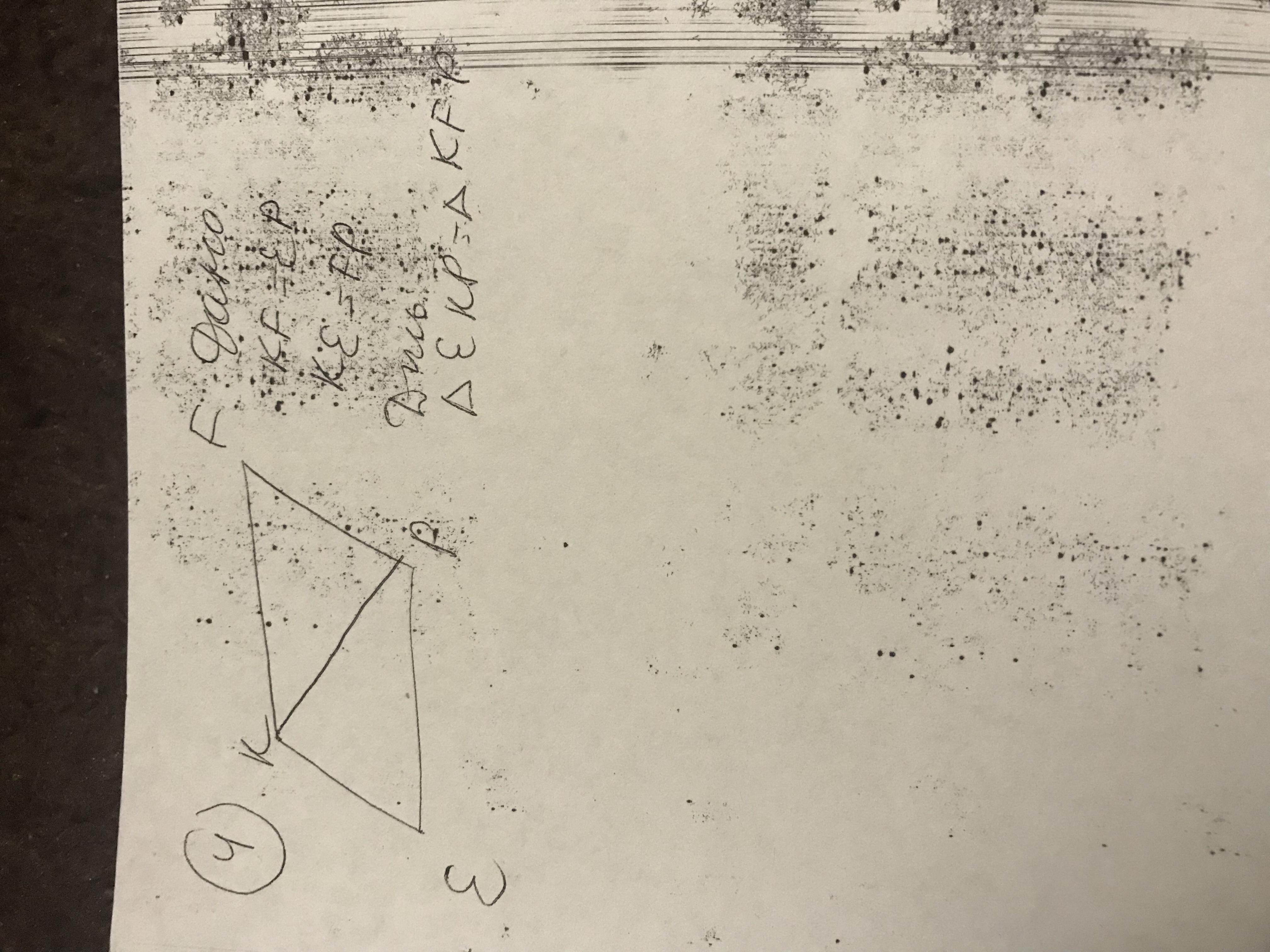 так как КF=EP, KE=EP( по услов), КР- общая,то треуг ЕКР=КРF(по 3 призн рав треуг)