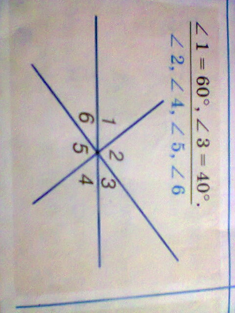 угол1+угол2+угол3=180 (т.к образуют развернутый угол) значит угол3=180-60-40=80