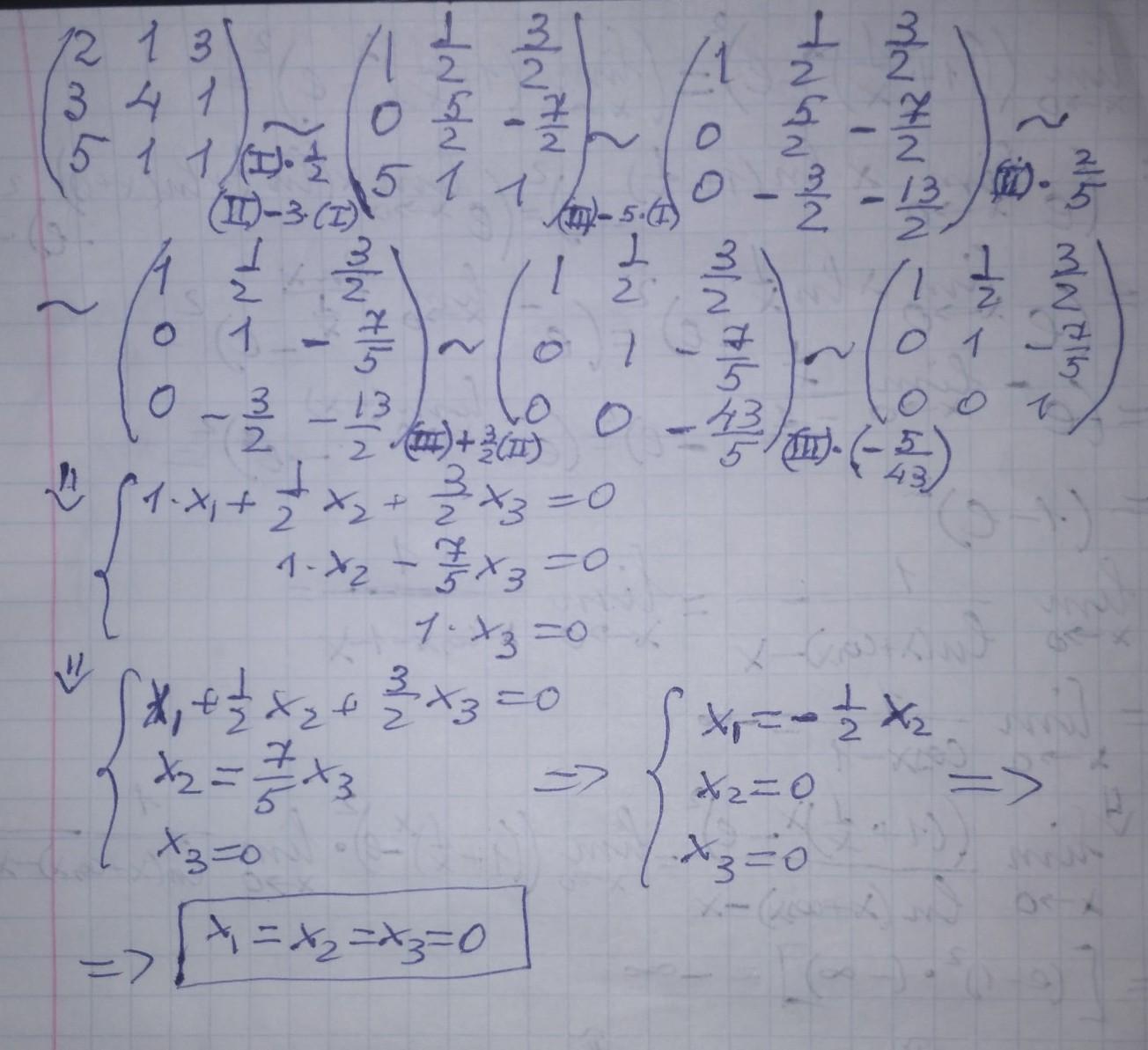 Помогите с решением СЛАУ методом Гаусса! Решил, но верно ли, либо есть ли какой-то способ попроще не уверен. Не решал очень давно, и подзабыл, поэтому очень рассчитываю на Вашу помощь))
