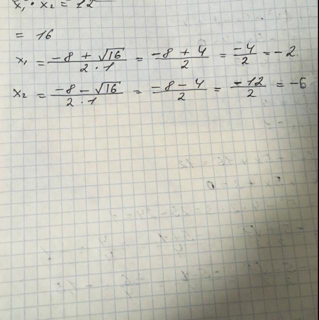X1=-5+кореньиз1 / 2*2 = -5+1 /4=-4 / 4 = -1