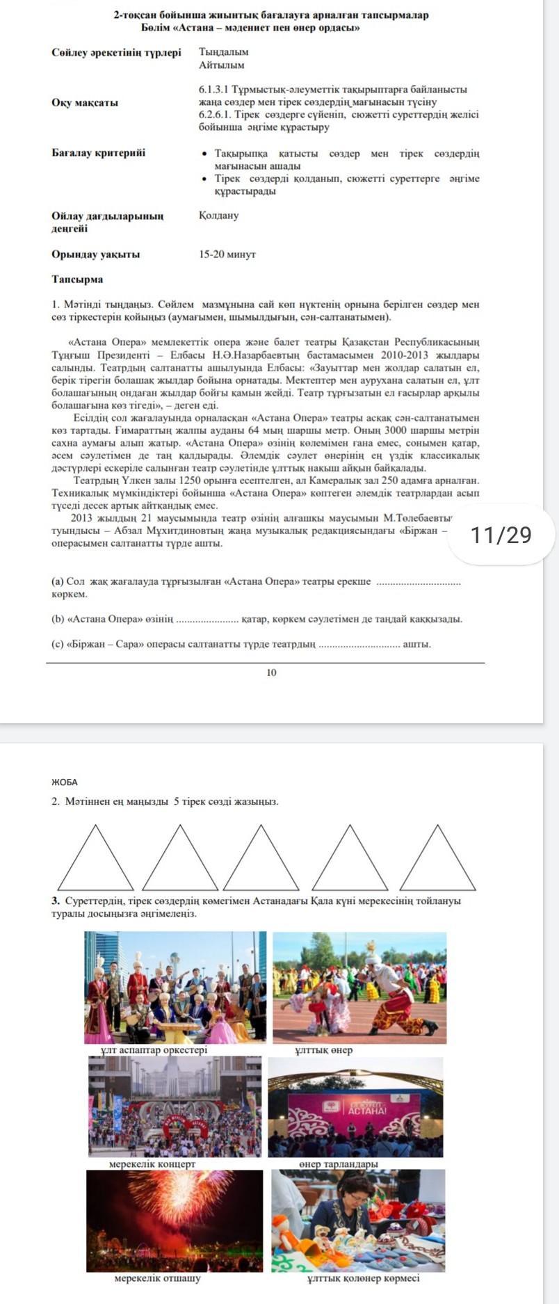 Помогите пожалуйста разобраться с этими заданиями! Буду очень благодарна!! Это СОР1 за 2 четверть по казахскому языку. Желательно побыстрее. (СРОЧНОО)