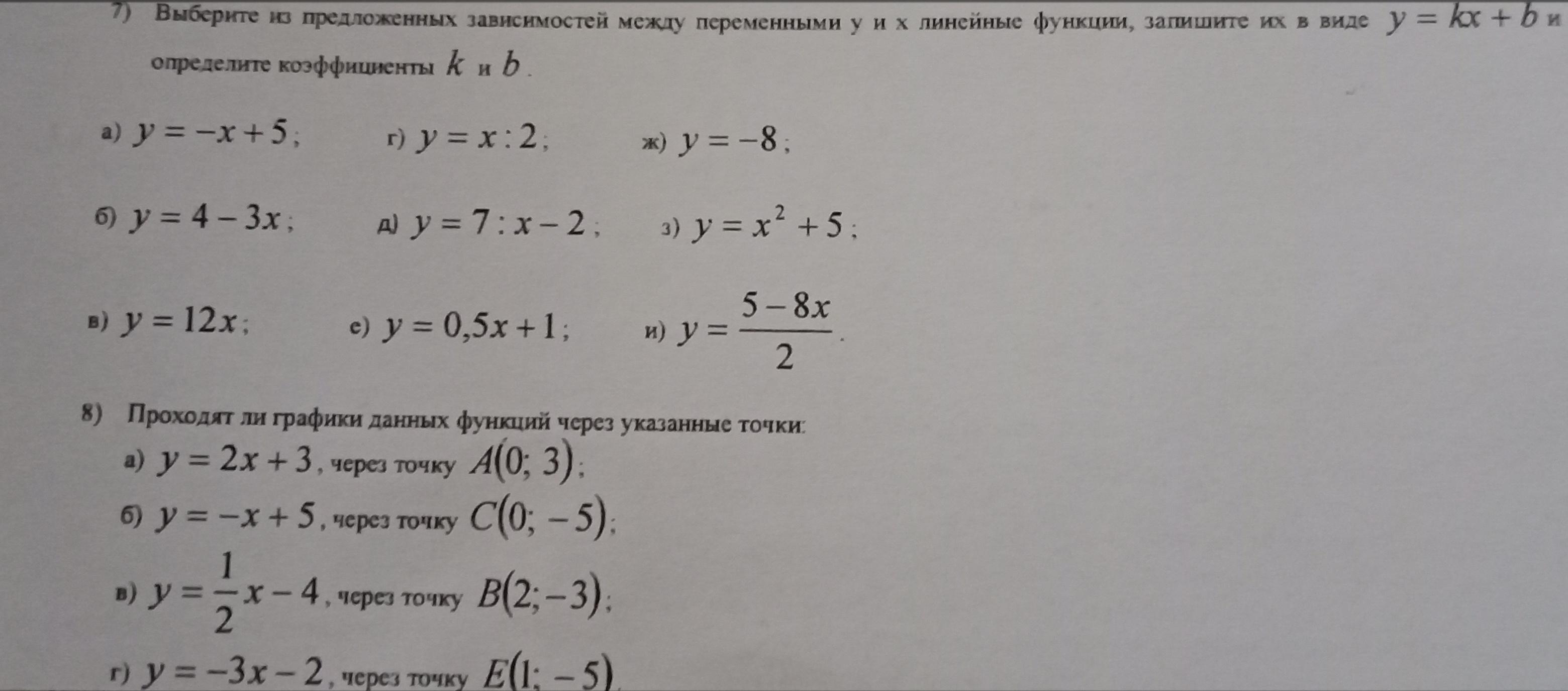 и) y=(5-8x)/2 =5/2 - 8x/2 = 2,5 -4x k=-4; b=2,5