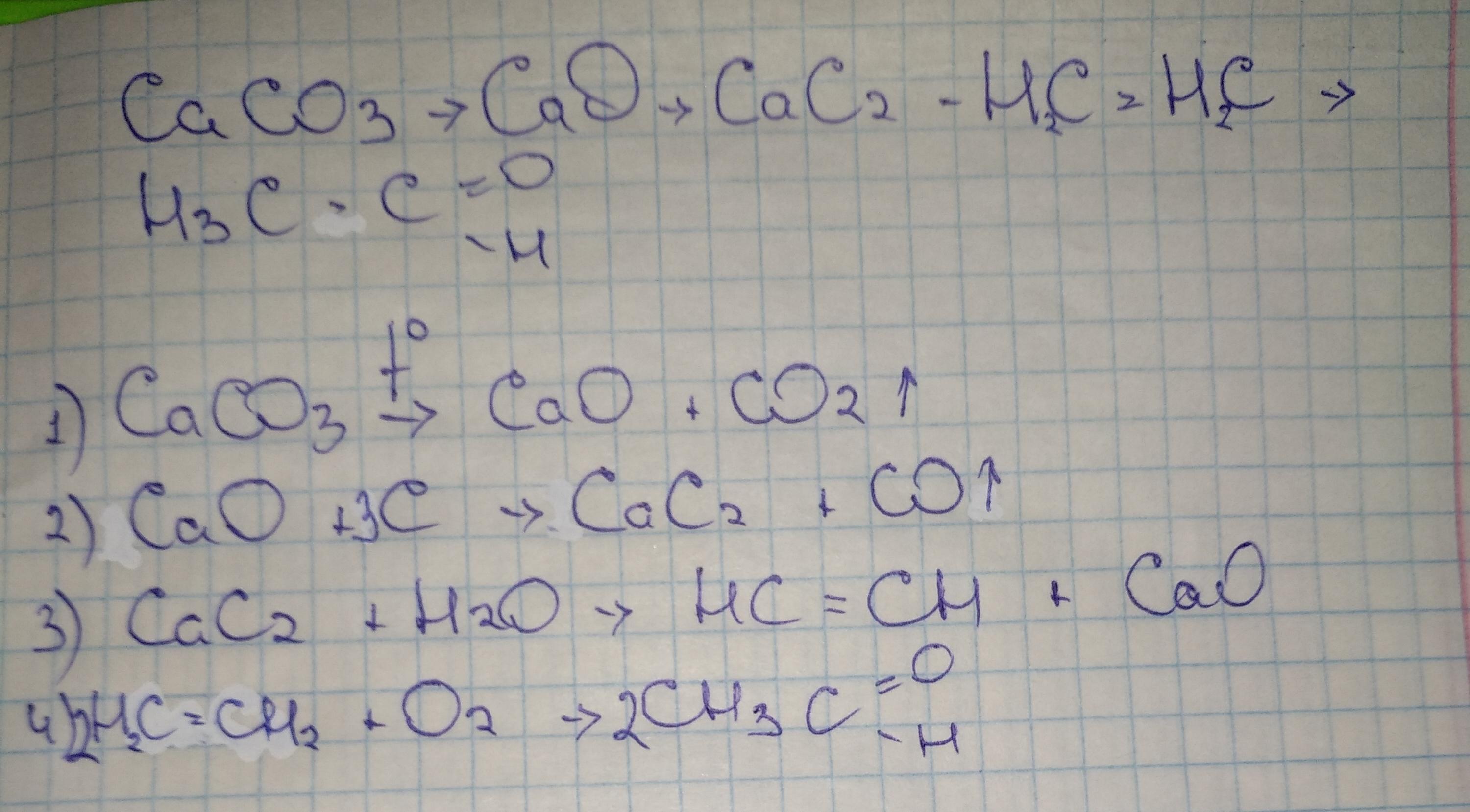 3) Далее карбид кальция добавляем в воду -> в результате получаем ацетилен (НС=СН) + оксид кальция