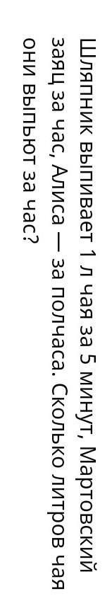 Т. К шляпник выпивает за 5 минут 1 л чая, значит за 1 час он выпивает 60÷5=12л за час