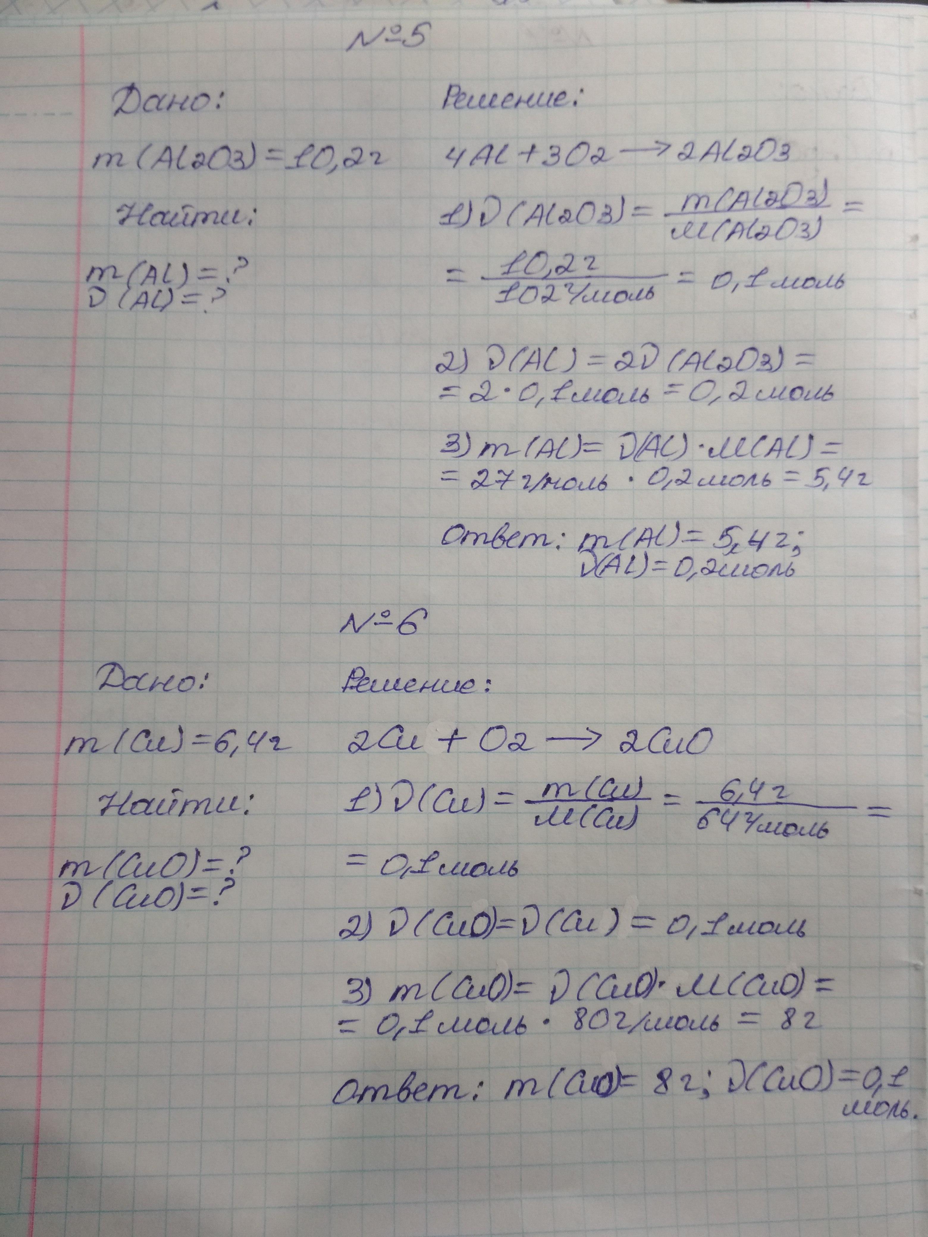 5)Какую массу и количество вещества алюминия нужно сжечь, чтобы получилось 10,2 г оксида алюминия ?
