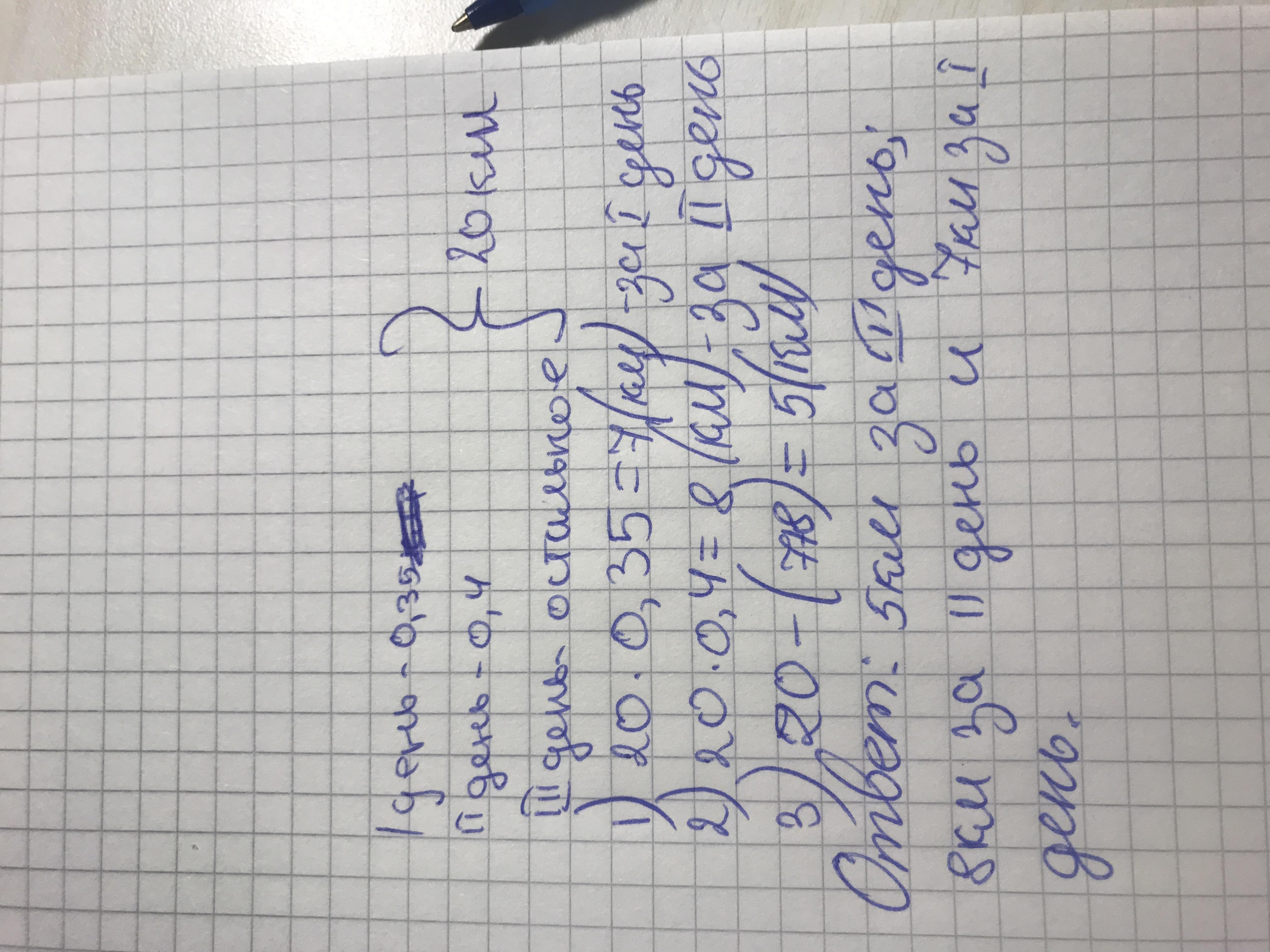 2) 20•0,4=8(км) за 2-й день