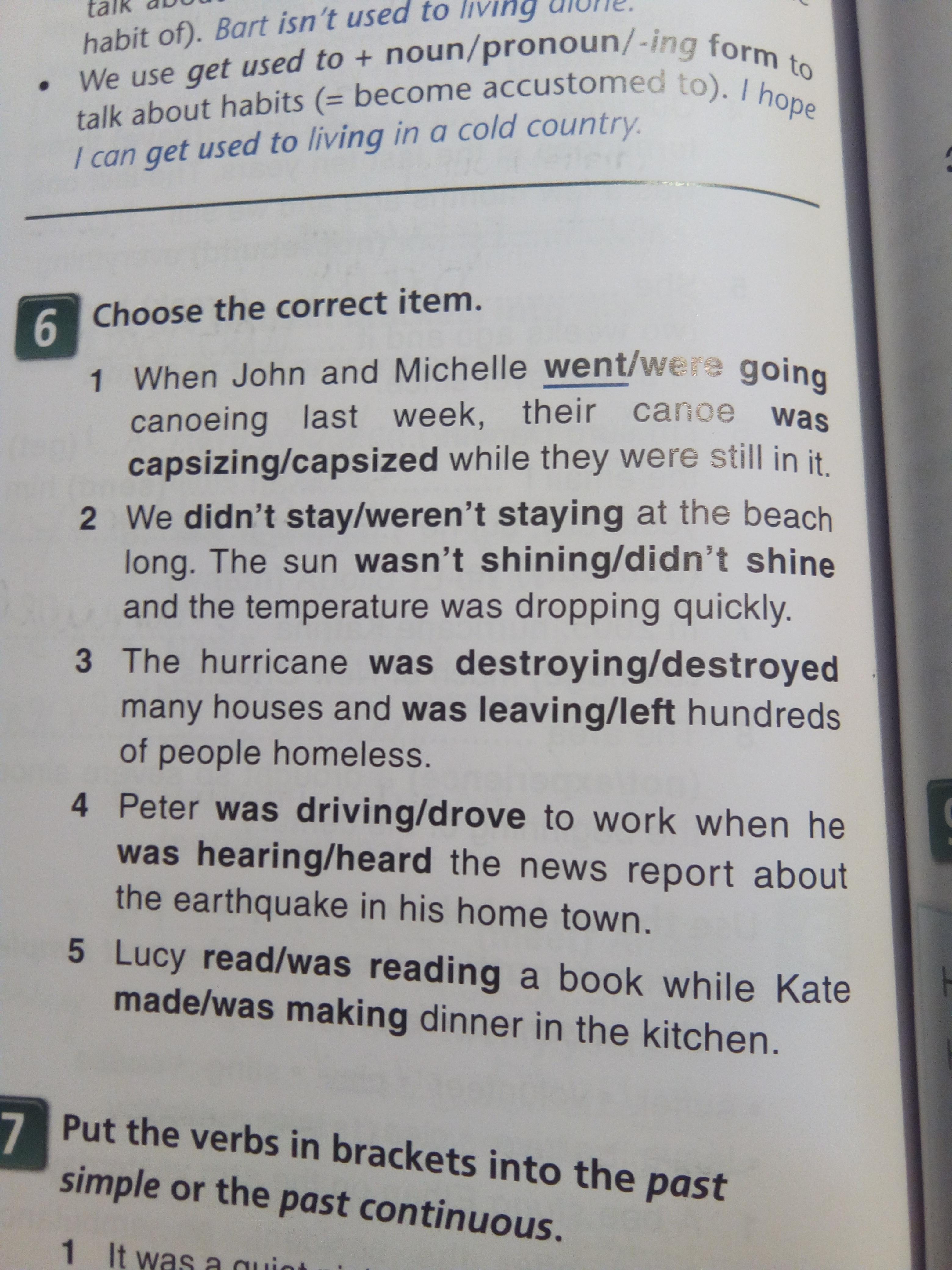capsized, weren't staying, was destroying, leftwas driving, heard, was reading, made