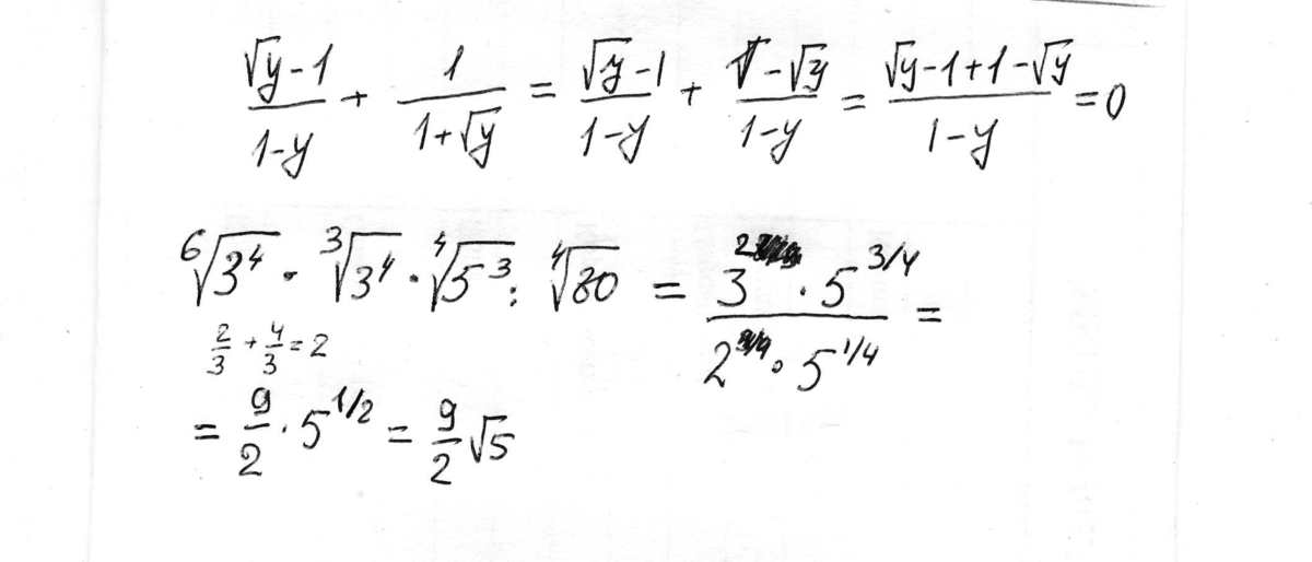 (y^0.5-1)/(1-y^0.5)(1+y^0.5)+1/(1+y^0.5)= -1/(1+y^0.5)+1/(1+y^0.5)=0