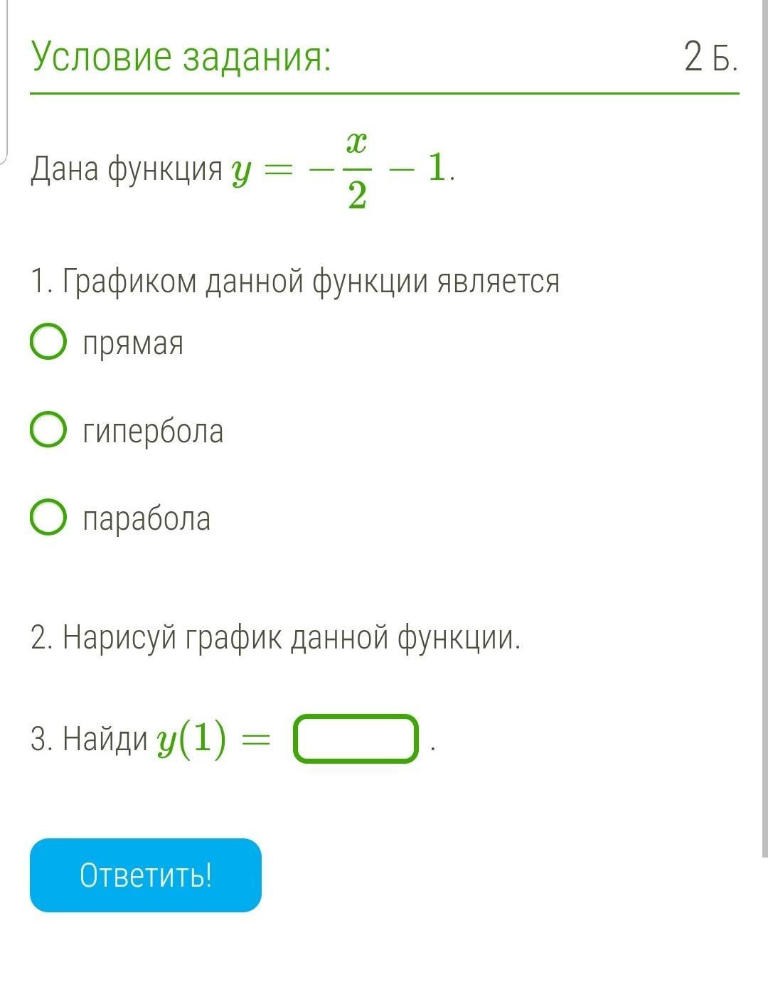 2. (график можно не рисовать, просто подставим в функцию вместо y один и найдем x)
