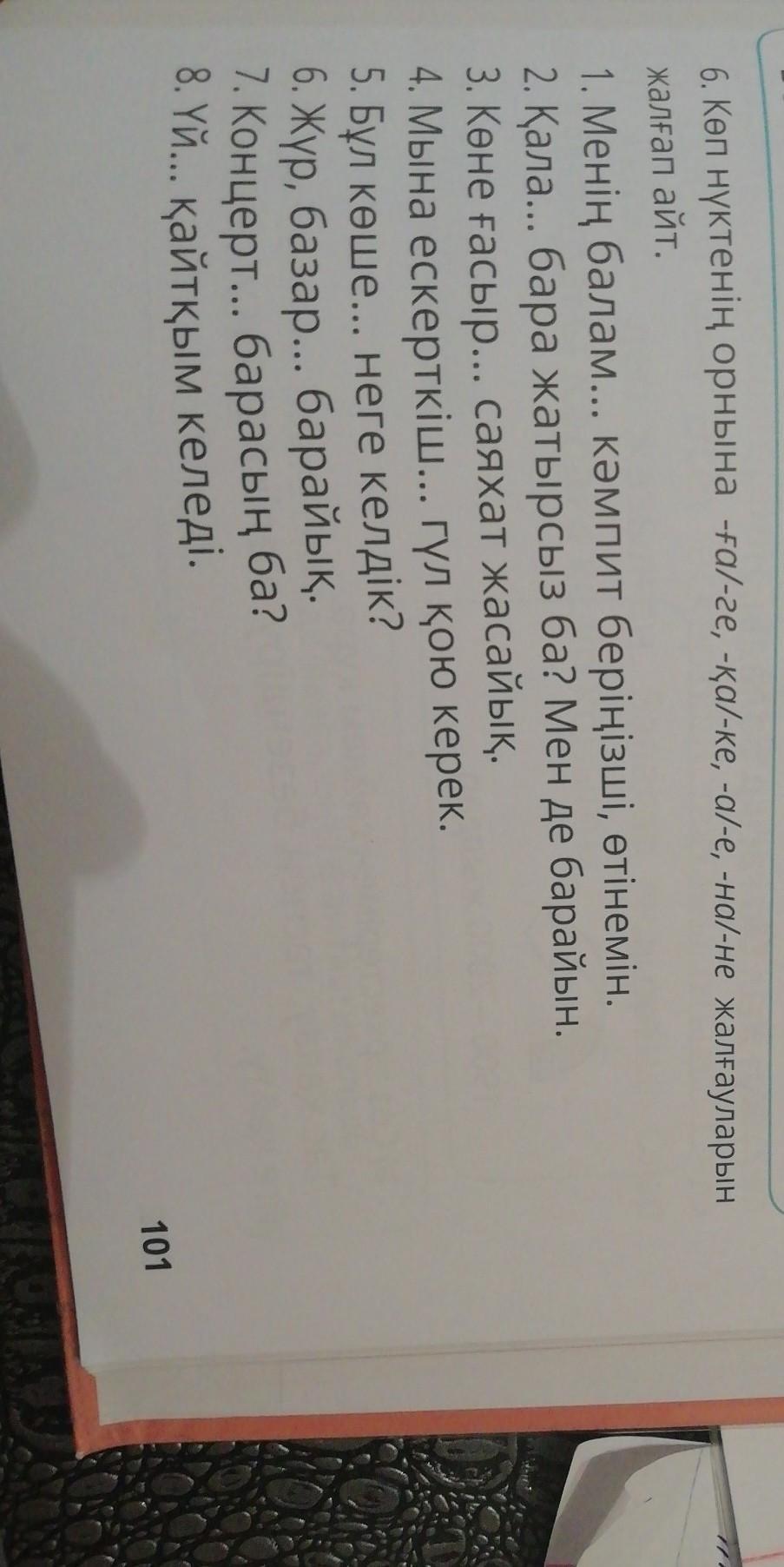 1 балама2 калага 3гасырда 4ескерткышке5кошеге6базарга 7концертке 8уйге