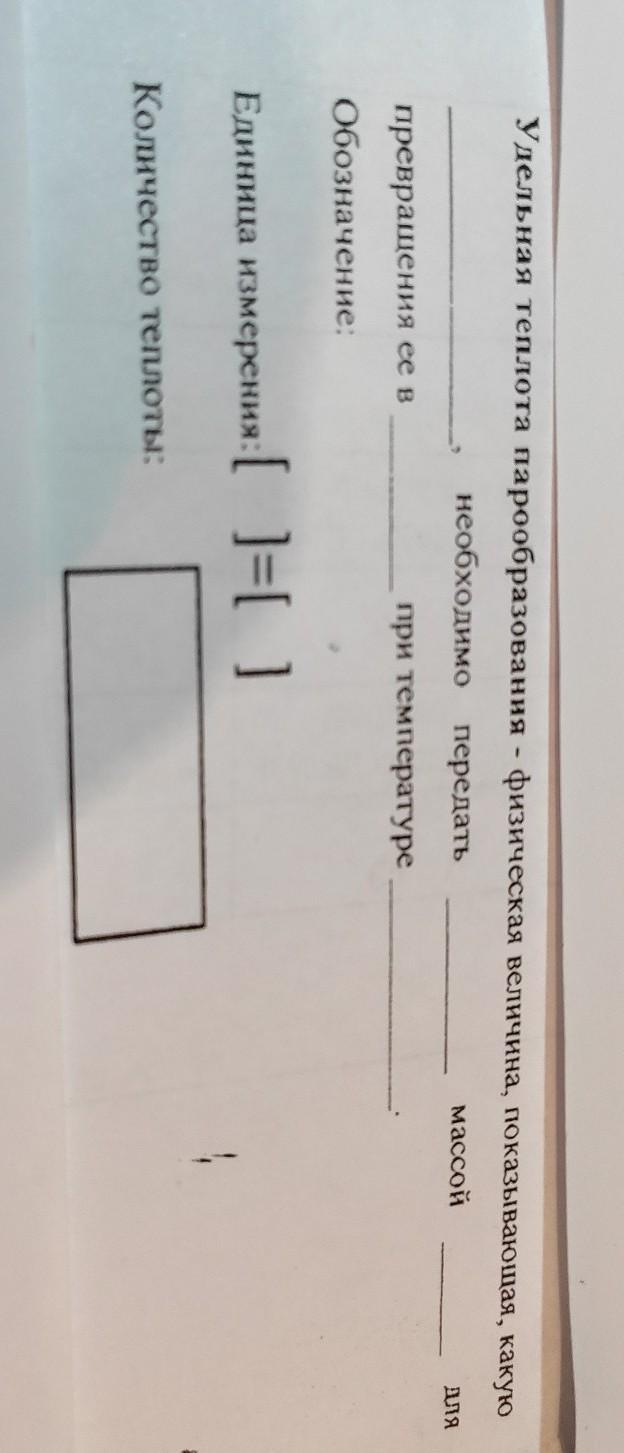 Удельная теплота парообразования - физическая величина, показывающая какое количество теплоты необходимо передать телу массой 1 кг для превращения её в пар при температуре кипения.
