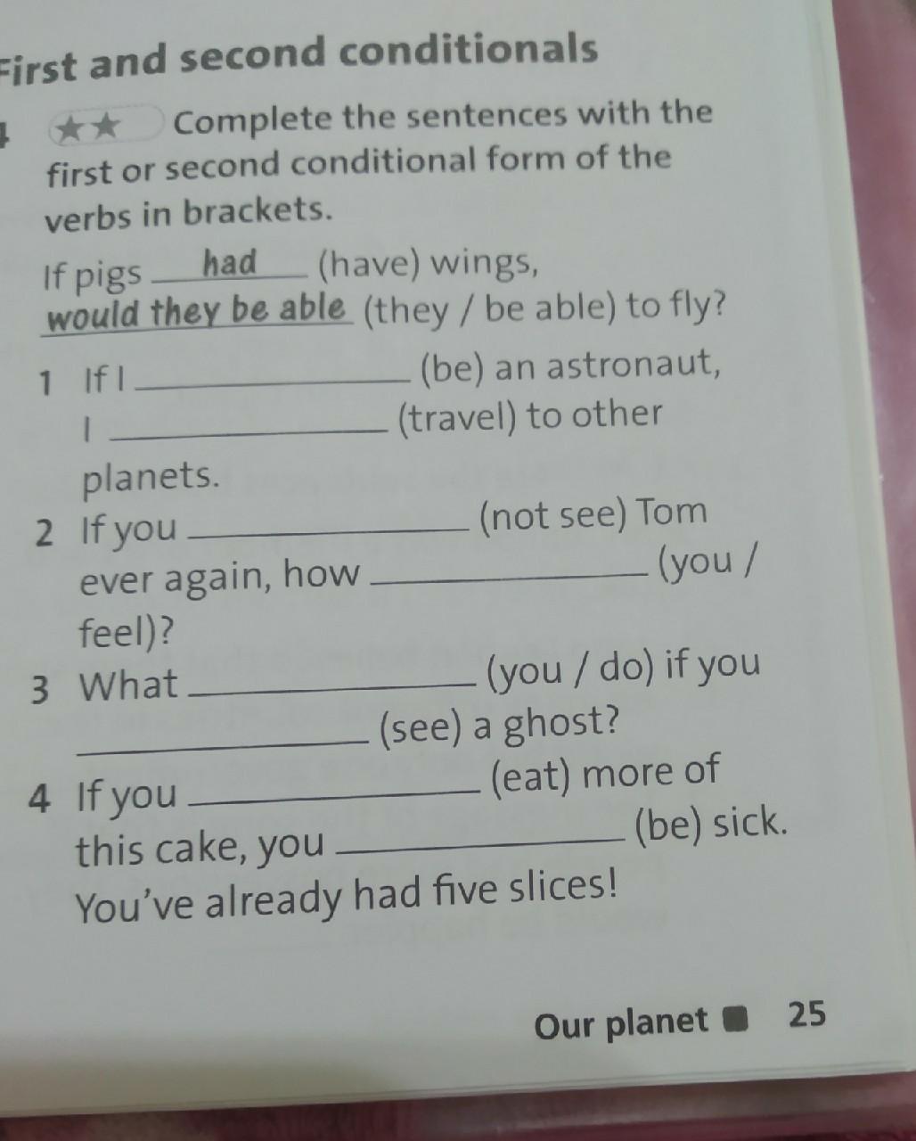 1 If I (were) an astronaut, I (would travel) to other planets.