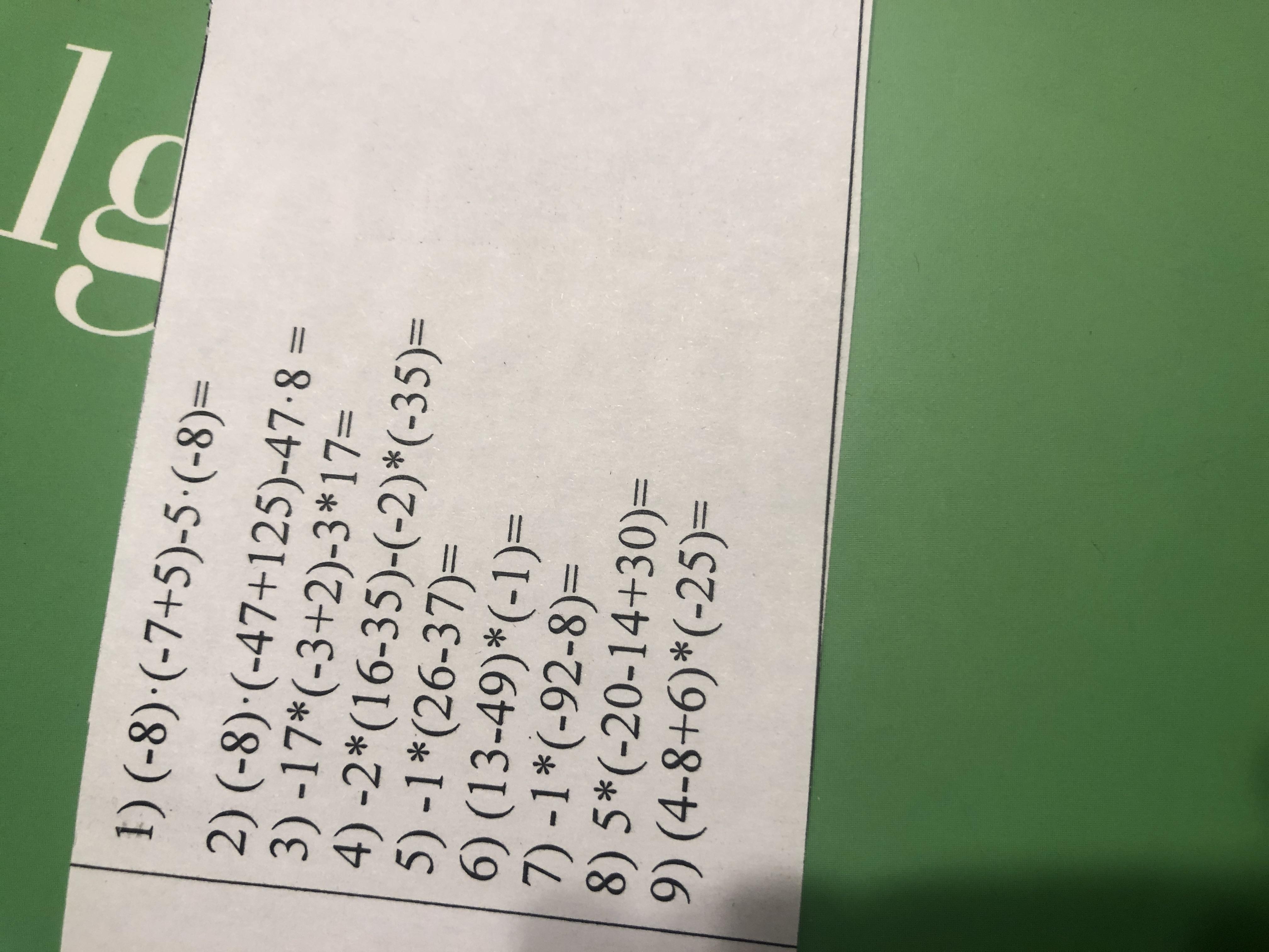 1)56 2)-1000 3)-34 4)-32 5)11 6)36 7)100 8)-20 9)-50