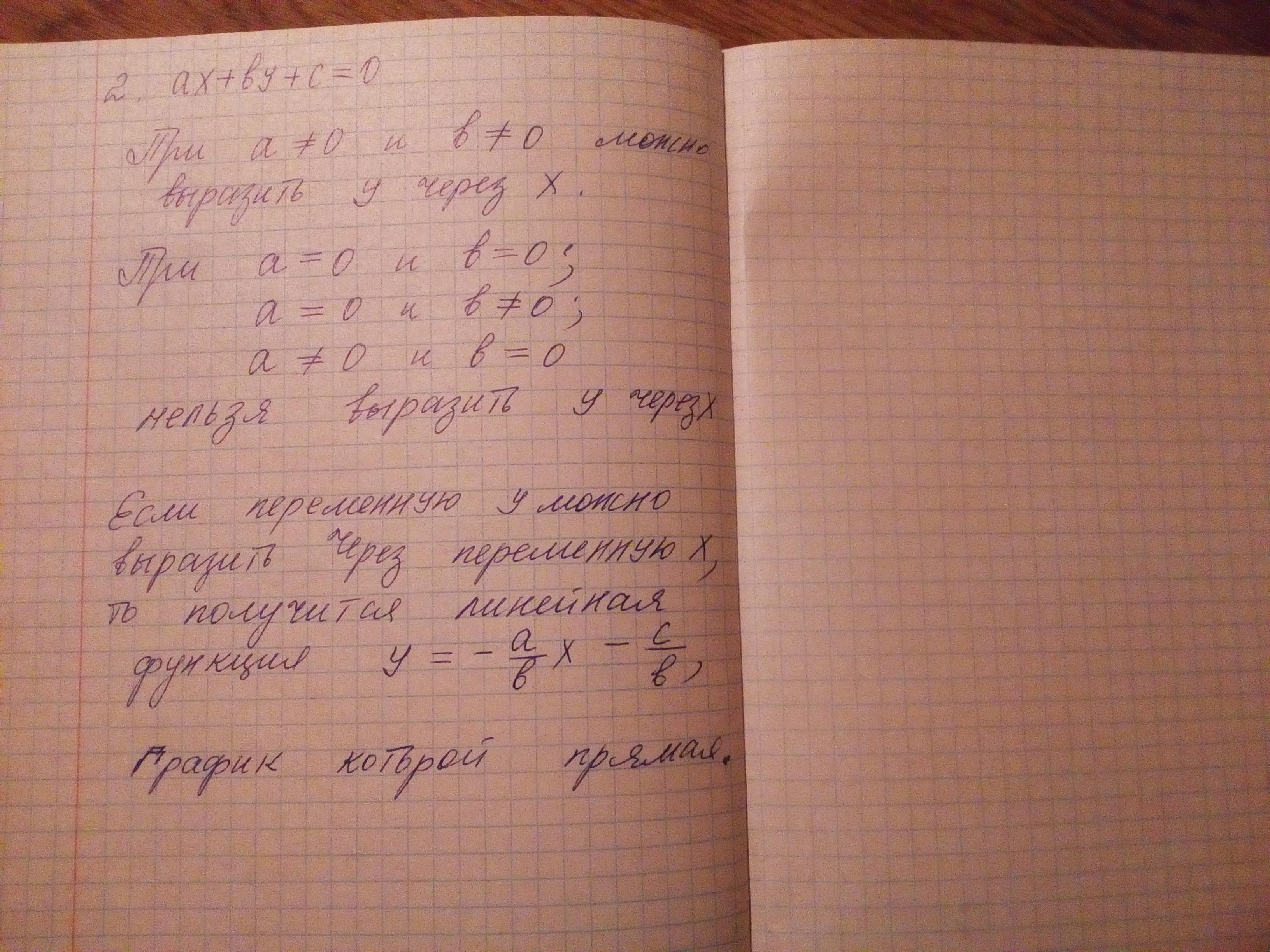 2.В каком случае из линейного уравнения ax + by + c = 0