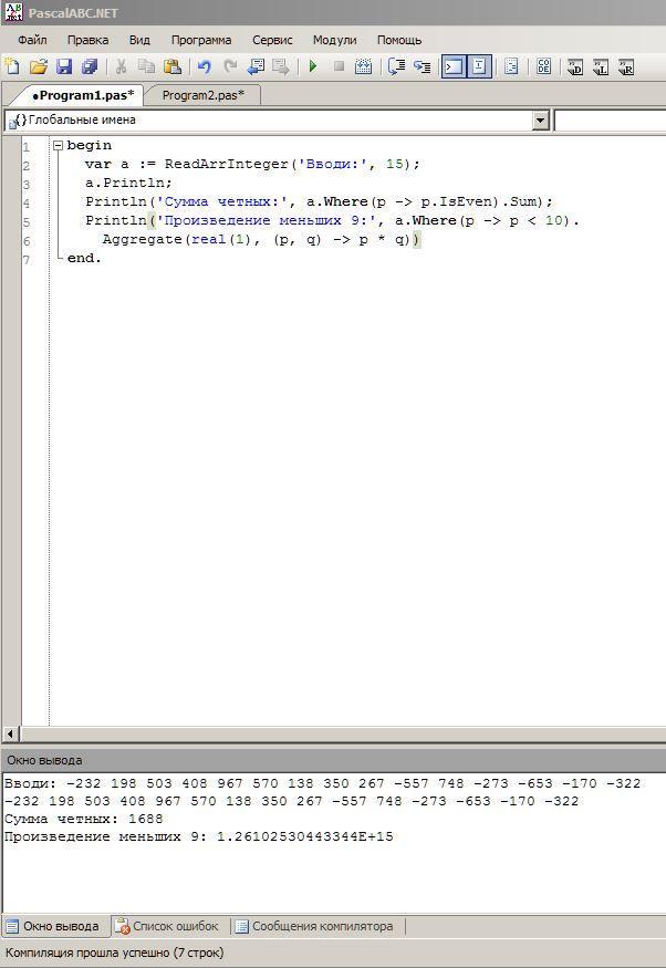 Println('Сумма четных:', a.Where(p -> p.IsEven).Sum);
