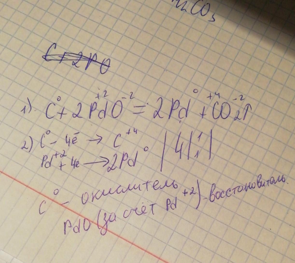 Расставить коэффициенты методом электронного баланса. Найти элемент который проводит окисление c+2pbo=2pb+lo2