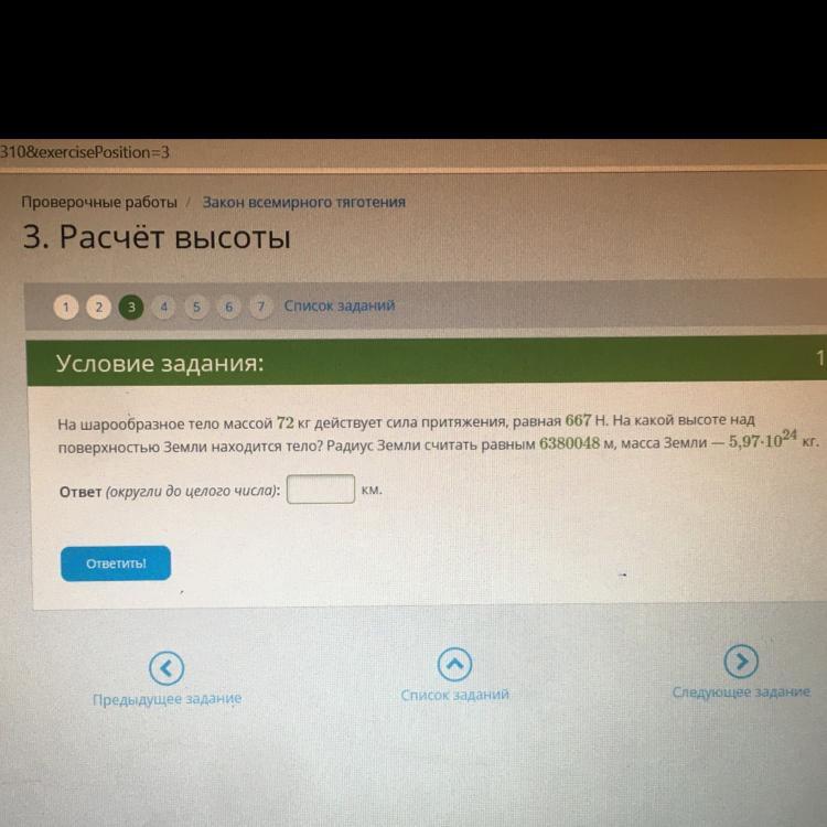 На тело массой 72 когда действует сила притяжения, равная 667 Н. На какой высоте поверхностью Земли находиться тело? Радиус Земли считать равным 6380048м, масса земли - 5,97*10 в 24 степени