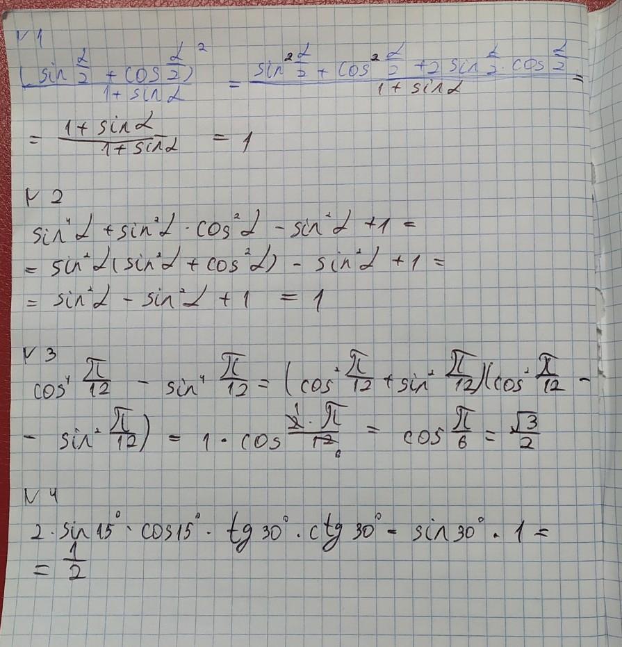 Использовал формулы косинуса и синуса двойного угла, основное тригонометрическое тождество.