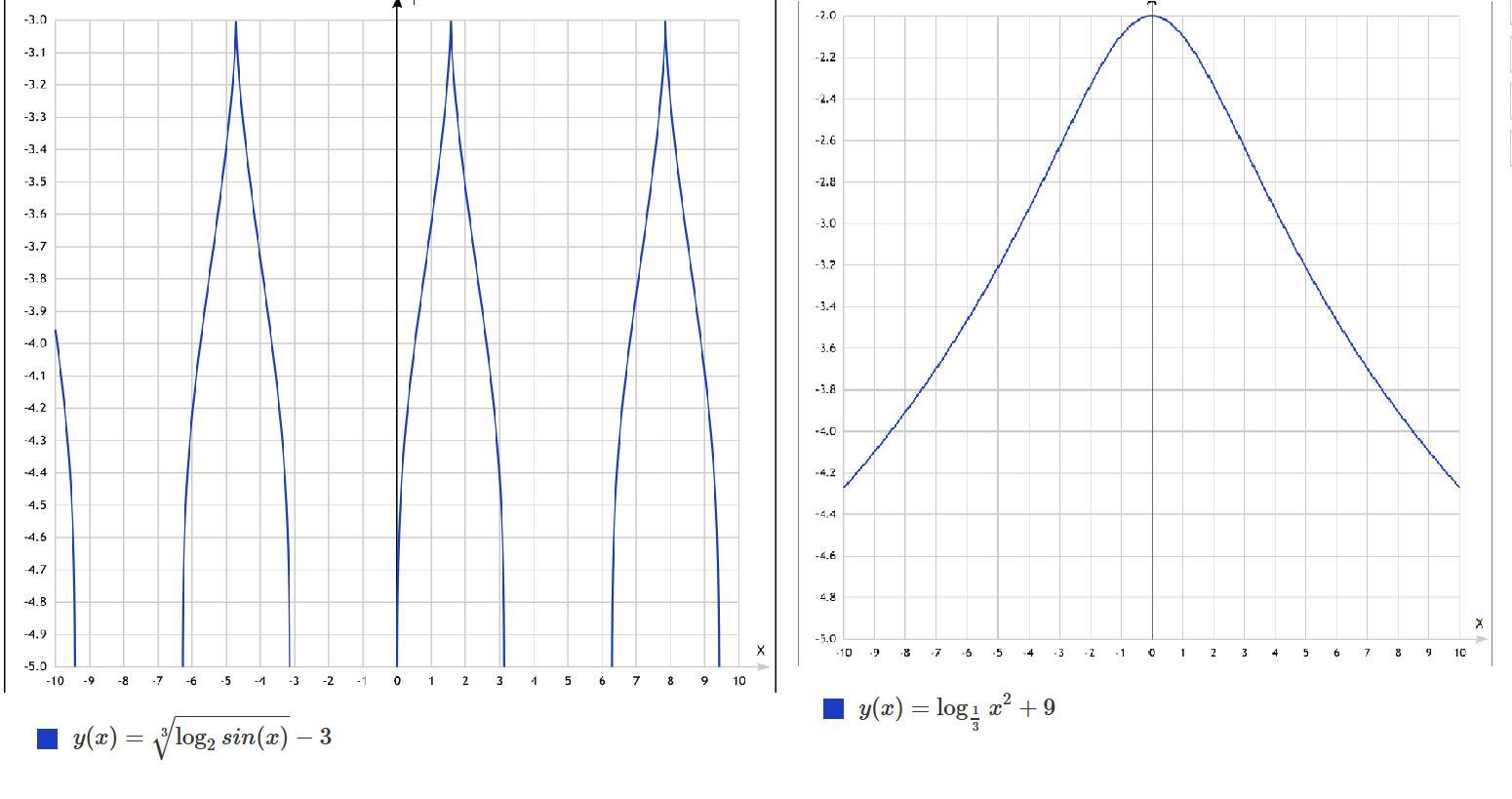 y=log(1/3)(x^2+9) при x=0 y=-2; при x>0 y-убывает до -∞