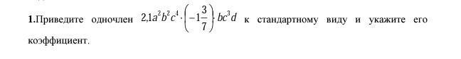 1). Перемножаешь все числа в одночлене. (2.1 * (-1 3/7) = -3)