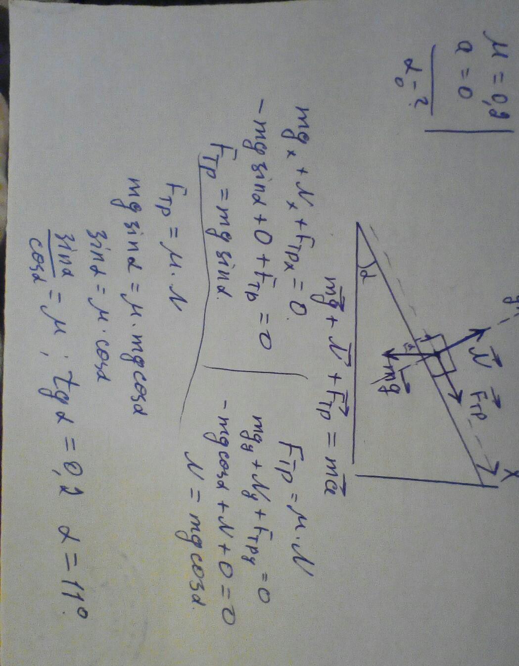 Тело находится на наклонной плоскости. Коэффициент трения между поверхностью тела и наклонной плоскостью 0,2.