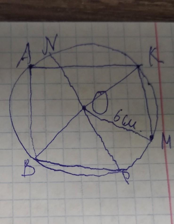 Начертите окружность радиусом 6 см. Отметьте на окружности т. A, B, K, P, M, N, O так, чтобы были: