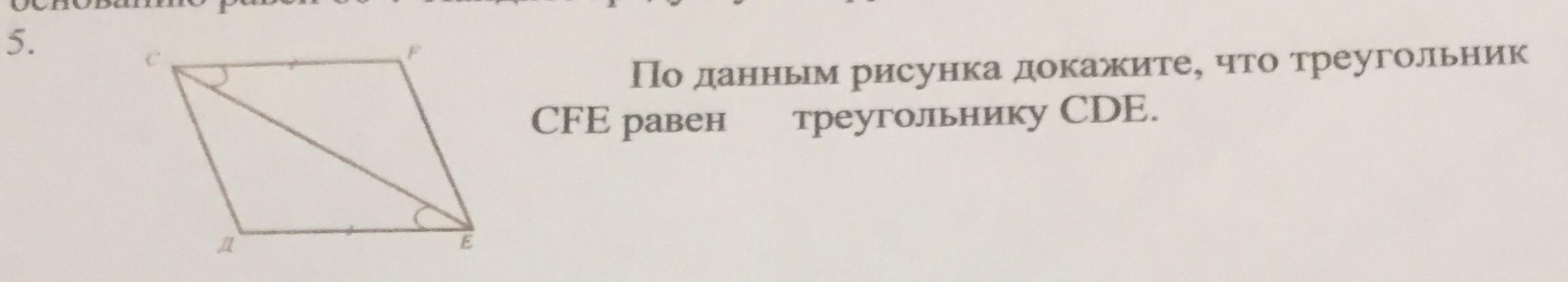 Не помню какой номер признака равенства треугольников, первый или второй, но звучит так: если две стороны и угол между ними соответсвенно равны двум сторонам и углу между ними, то такие треугольники равны.