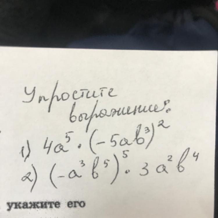 1) 4а^5•(-5ав^3)^2=4а^5•25а^2•в^6=100а^7•в^6