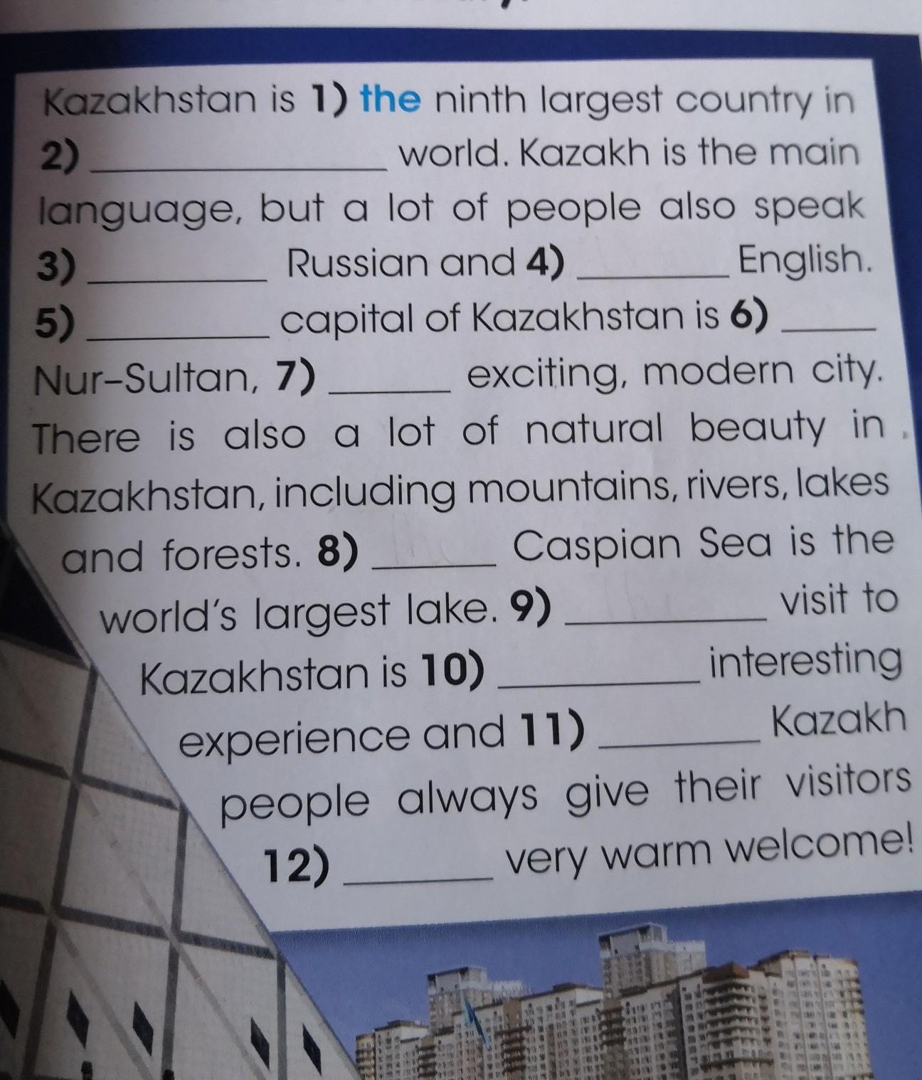 1) the 2)the 3)in 4)in 5)Nur-Sulatan 6) a 7) He is an 8)Kazakhstan 9)A 10)very 11)experiment 12)Kazakhstan (надеюсь помогла)