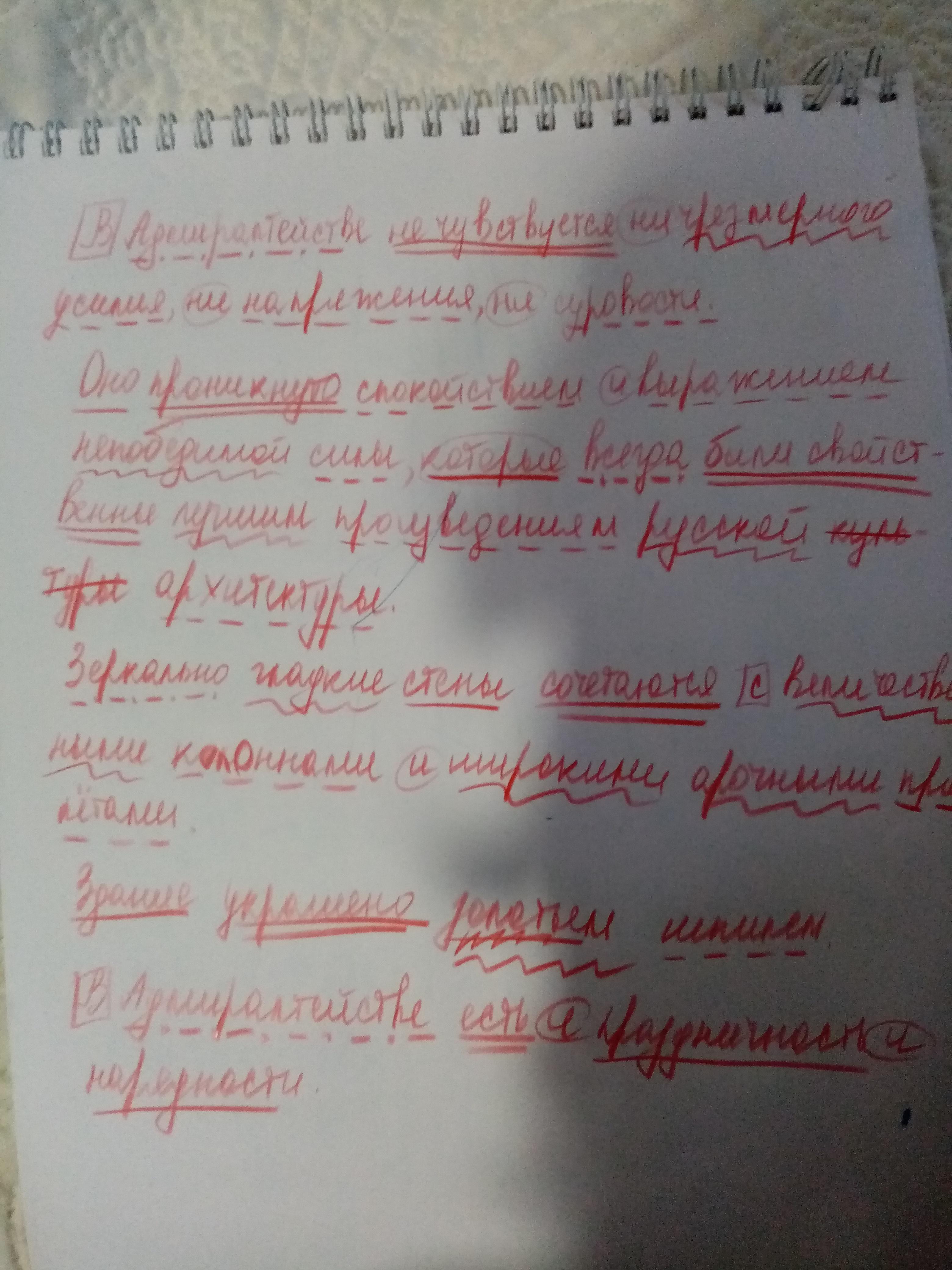 В Адмиралтействе не чувствуется ни чрезмерного усилия, ни напряжения, ни суровости. Оно проникнуто спокойствием и выражением непобедимой силы, которые всегда были свойственны лучшим произведениям русской архитектурой. Зеркально гладкие стены сочетаются с величественными колоннами и широкими арочными пролетами. Здание украшено золотым шпилем. В Адмиралтействе есть и праздничность и нарядности.