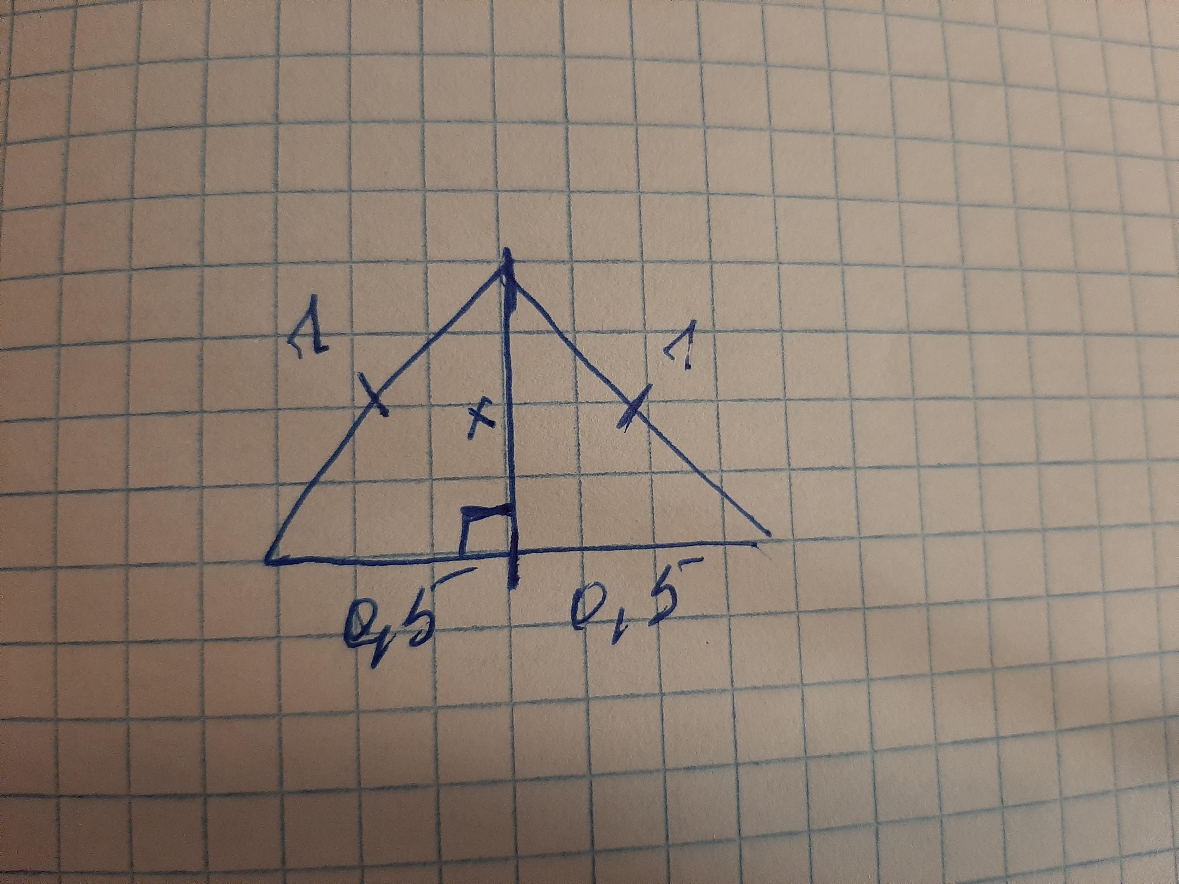 Высота, проведённая в равносторонем треугольнике является ещё и медианой, которая делит сторону на две равные части, т.е. на две части равные по 0,5
