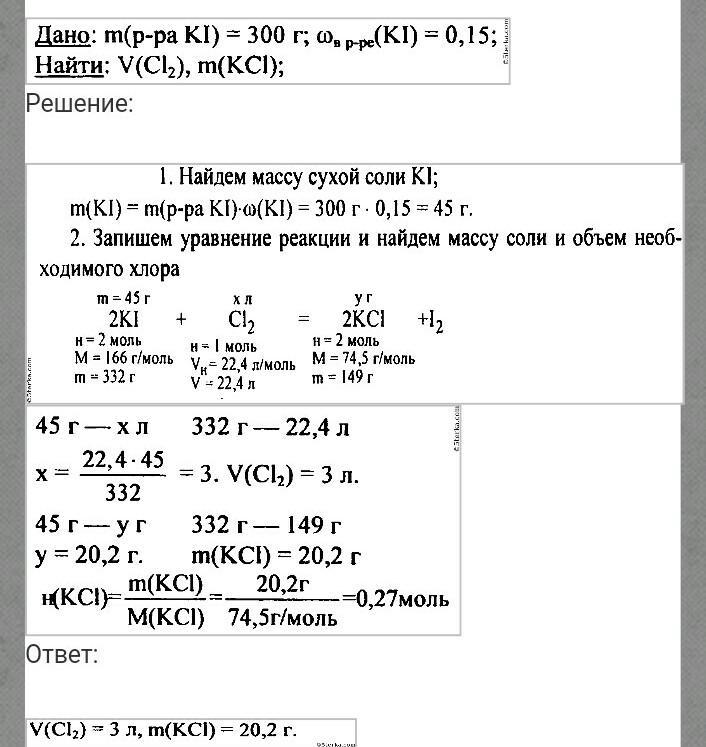 Найдем массу иодида калия = массовая доля * массу растора = 0,15*300 = 45г