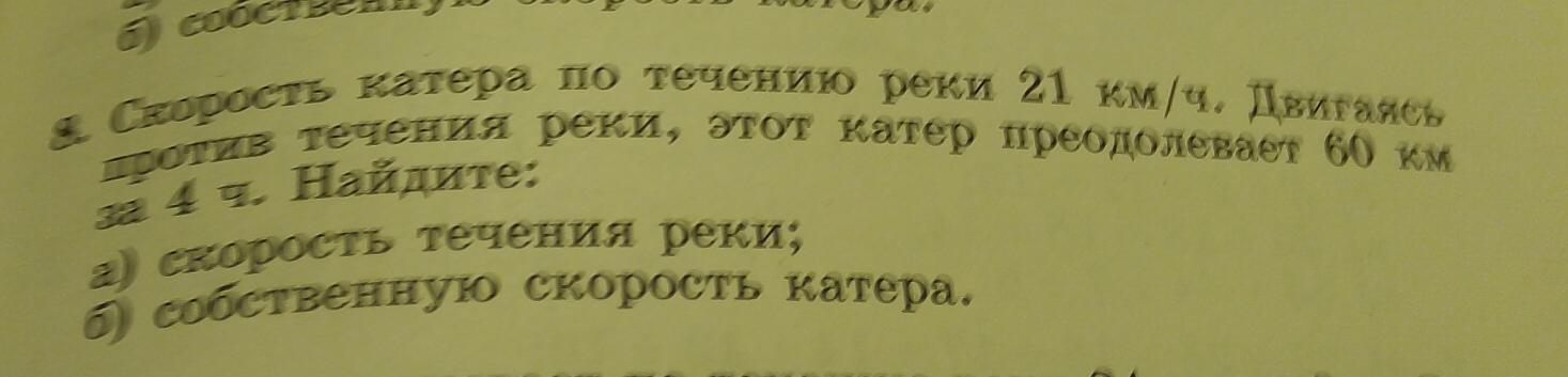 Итого: скорость течения реки равна 3км/ч, собственная скорость катера равна 18 км/ч